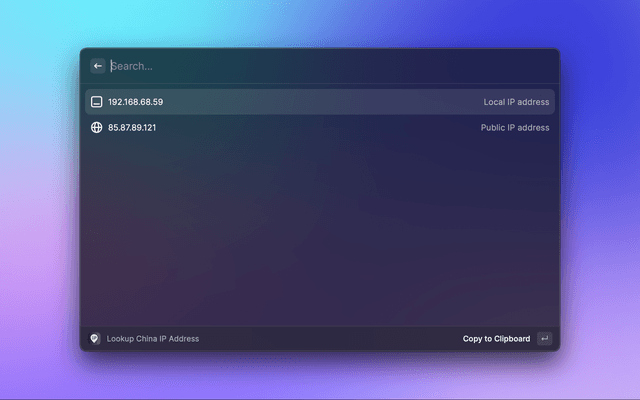 Now, you can get your Chinese public network IP address by RayCast extension.