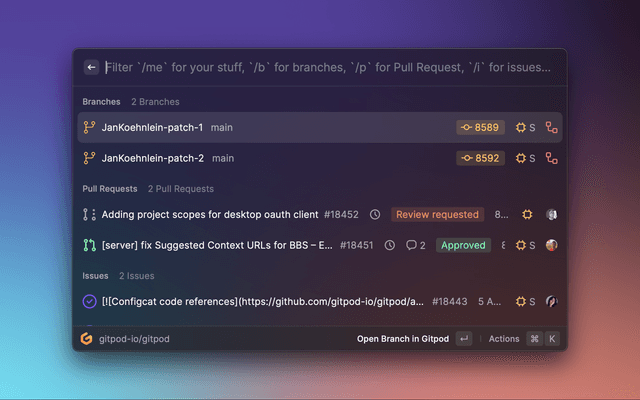 We pin every context that you open with Gitpod, for faster access and if you wish to manually add any context to your Recents/Pinned list, you can achieve by a single command cmd + R and bingo!