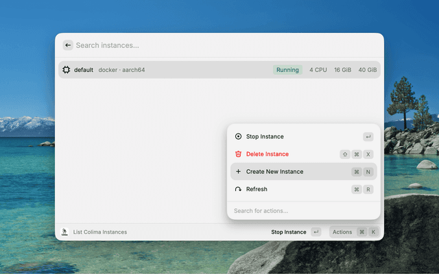 Manage Colima virtual machine instances and Docker environments without leaving Raycast.