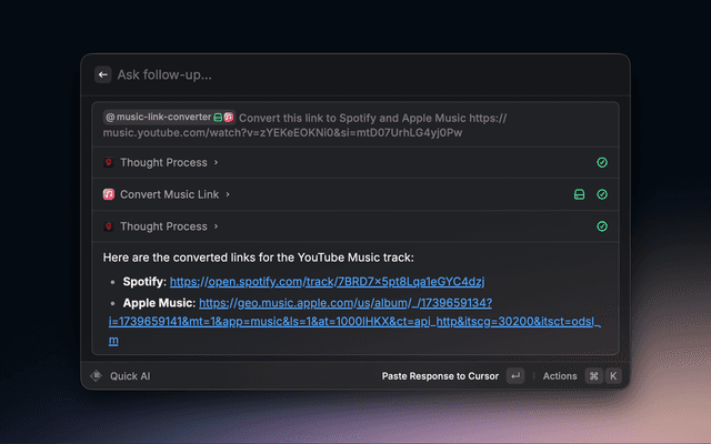 Convert a music link to another provider. For example you can convert Spotify links to apple music links.