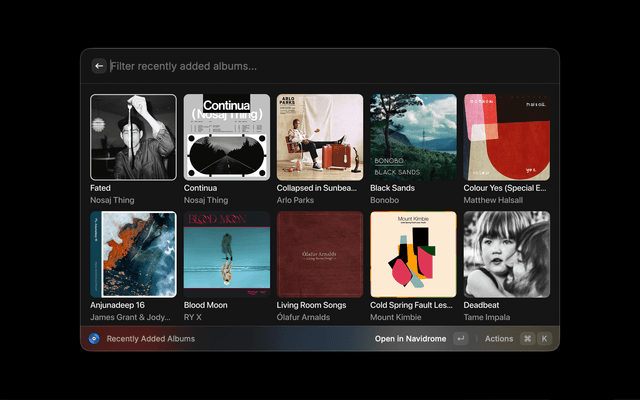 Search and browse your Navidrome music library directly from Raycast.