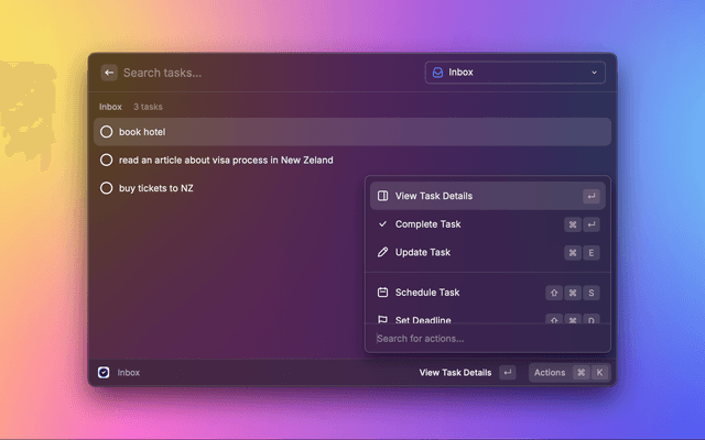 - View Tasks: Browse your tasks with multiple views (Inbox, Today, Upcoming, Completed)