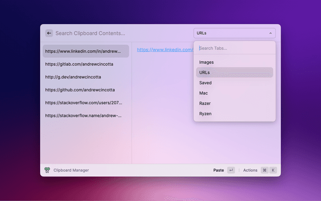Lists CopyQ clipboard entries and allows user to select/paste them.