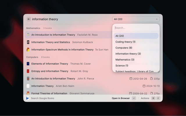 This extension works out of the box, but without an API key requests share a global quota and may be rate-limited. To avoid this, you can provide your own free Google Books API key.