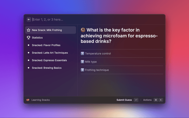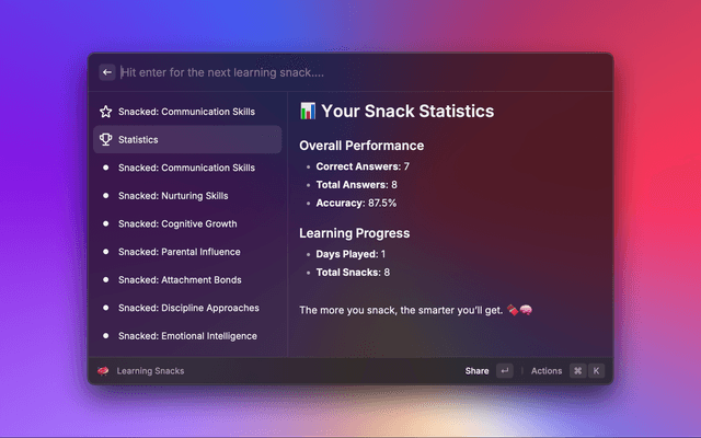 Bite-sized knowledge, on every topic you like, freshly delivered to your Raycast.