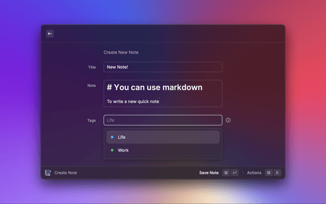 Create simple markdown notes in Raycast stored locally. No integrations required! Allows you to sync with a folder of your choice.