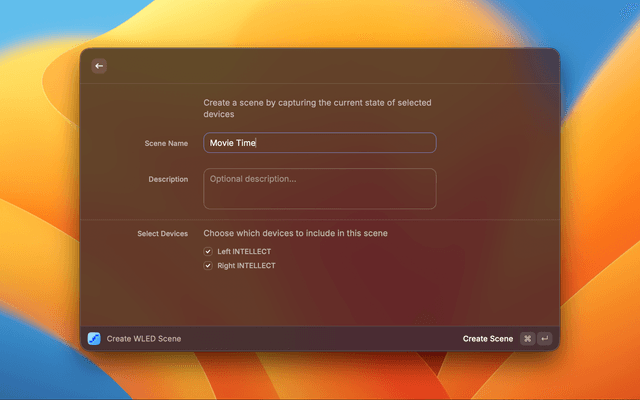 - Scenes - Create scenes to quickly apply specific states to the connected devices