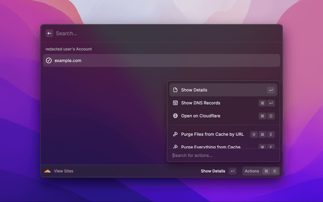 This extension allows to view your Cloudflare sites, pages, domains, and more. It also supports purging the cache of your sites.