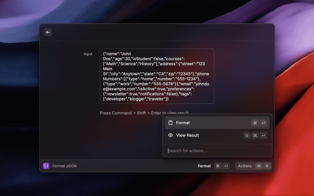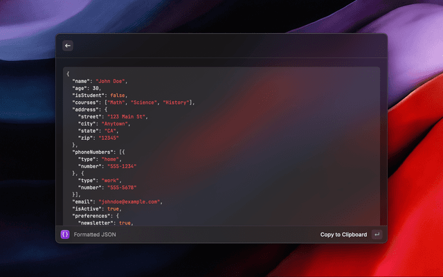 Formats a JSON file with a selected indentation. If the JSON is stringified, it will be parsed before formatting.