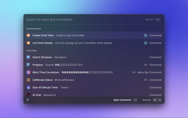 A Raycast extension that allows you to create, list, edit, and delete Cloudflare email aliases directly from Raycast.