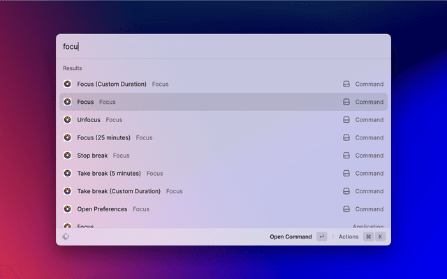 The Focus extension allows you to manage Focus app directly in Raycast.