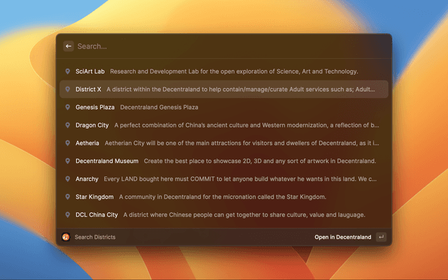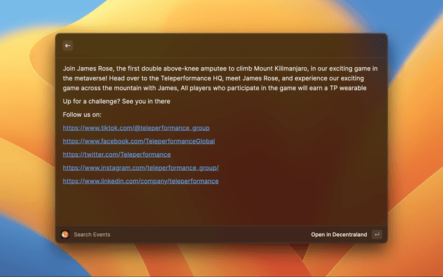 Search and go directly to events and places in Decentraland