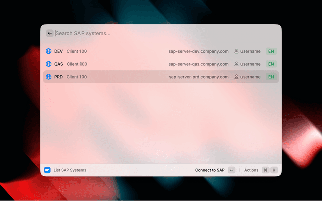 Quickly connect to SAP systems with your saved credentials.