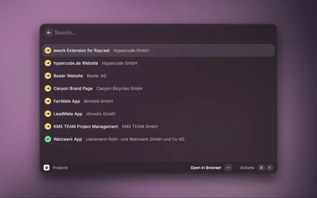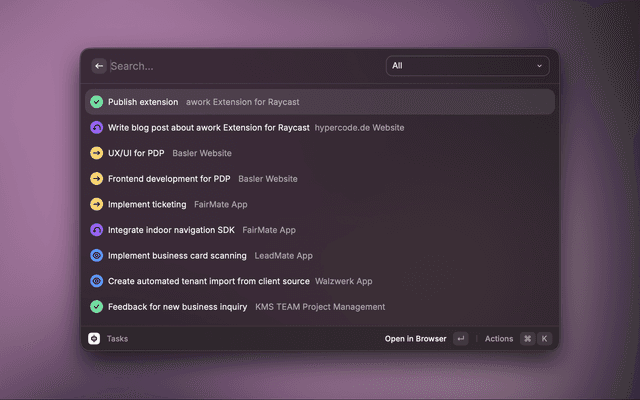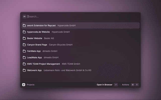 This is a Raycast extension with commands for the work management platform awork.