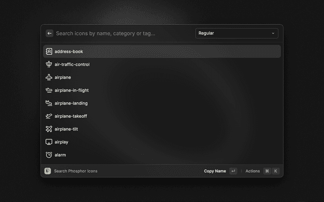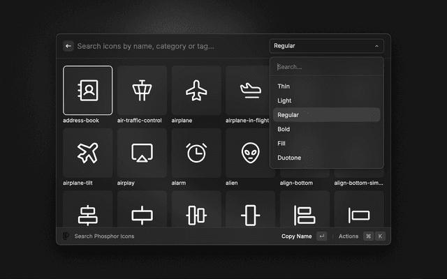 Search, preview and copy Phosphor Icons.