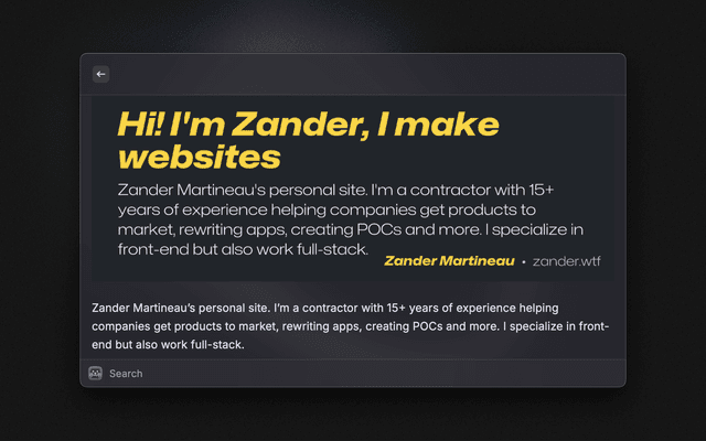 Made by Zander Martineau • zander.wtf • GitHub • Mastodon