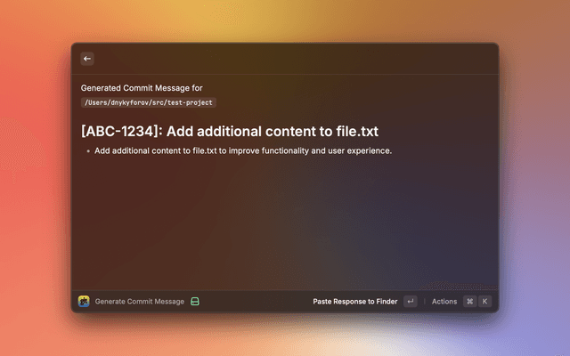 2. Calls an Raycast AI with key context details about current repository status and recent changes.