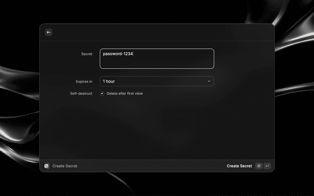 • Self-Destruct — Optionally delete the secret after the first view, ensuring it can only be read once