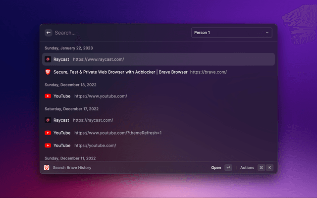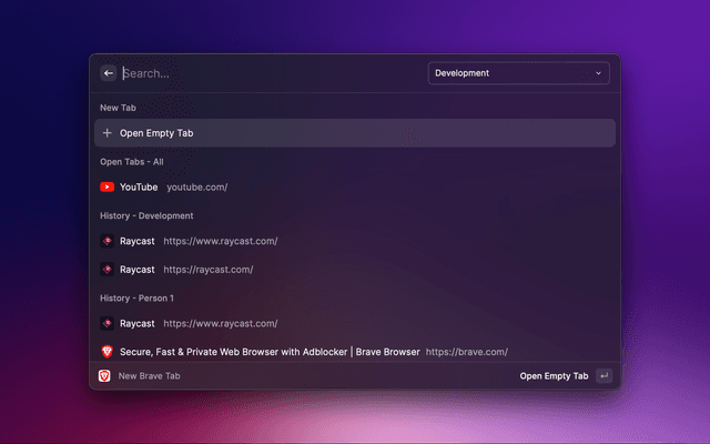 • Search and open Brave tabs from search query based on browser history across all profiles.