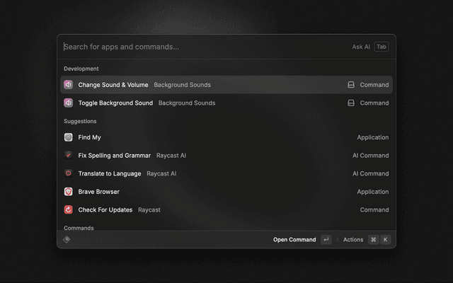 It would be great if we could choose which sound to play directly inside Raycast. However, I couldn't find a way to do that. If you know how to do it, please let me know. Plists are a pain to work with...