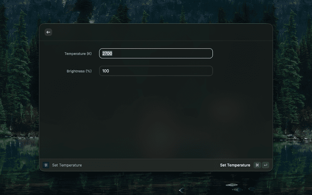 • Temperature: Enter a value between 2200K (Warm) and 6200K (Cool).