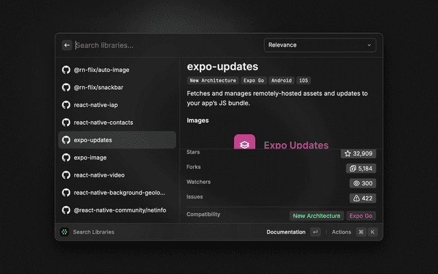 This extension uses data from the React Native Directory project, which is maintained by the React Native community.