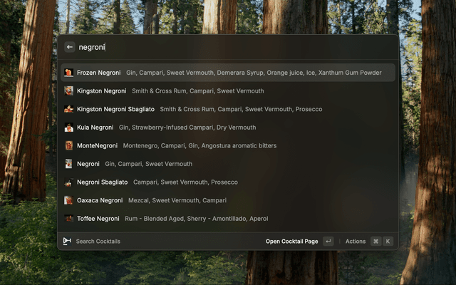 This Raycast extension integrates with your self-hosted instance of Bar Assistant.