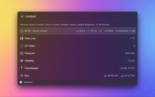 A Raycast extension that displays weather forecasts powered by wttr.in. Supports both macOS and Windows.