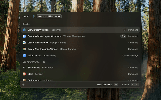 - Search DeepWiki Repos: Search for repositories indexed by DeepWiki directly within Raycast.