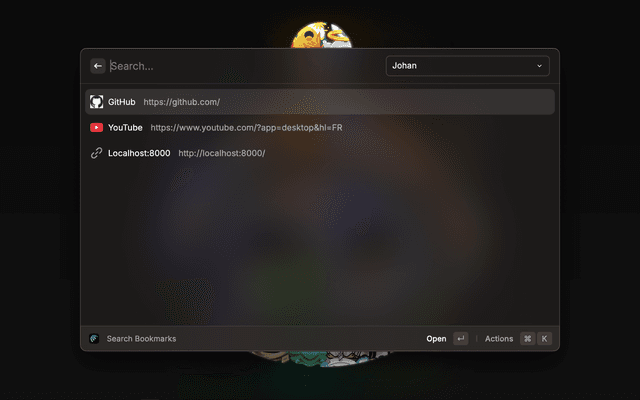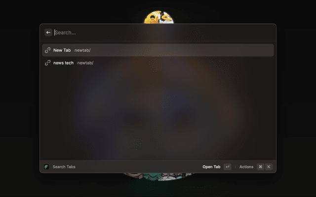 New Tab - Open new tab or search with PerplexitySearch Tabs - Find and switch between open tabsSearch History - Browse and open from browser historySearch Bookmarks - Access saved bookmarks quicklySearch All - Unified search across tabs, history, and bookmarksCreate New Window - Create new browser windowCreate New Incognito Window - Open private browsing session