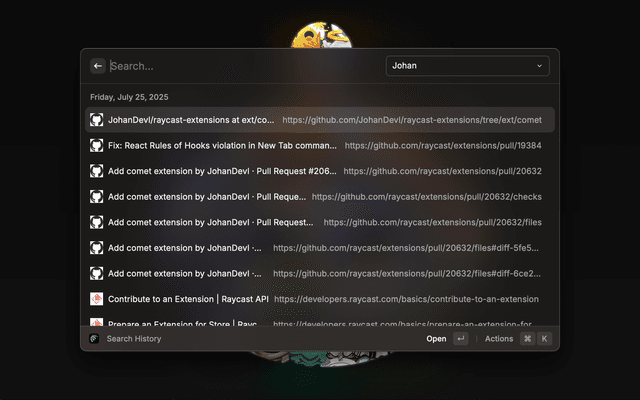 A powerful Raycast extension for seamless integration with Comet browser, featuring intelligent search and automation capabilities.