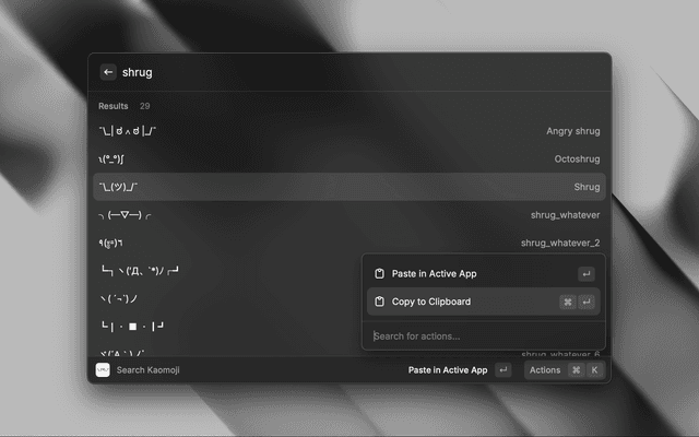 A Raycast extension that allows you to search for kaomoji and copy it to the clipboard.